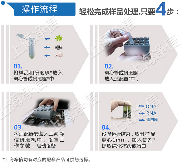 上海凈信Tissuelyser組織研磨儀是一種特殊的、快速的、高效率的、多試管的一致系統。它能將任何來源(包括土壤、植物和動物的組織/器官、細菌、酵母、真菌、孢子、古生物標本等)的原始DNA、RNA和蛋白質進行提取和純化。